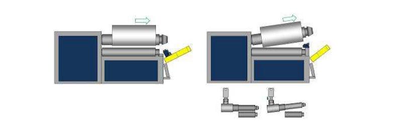 Sistema de extração fácil do tubo composto por um pistão montado na parte traseira do rolo superior com sua elevação, facilitando muito a retirada da peça dobrada da máquina.