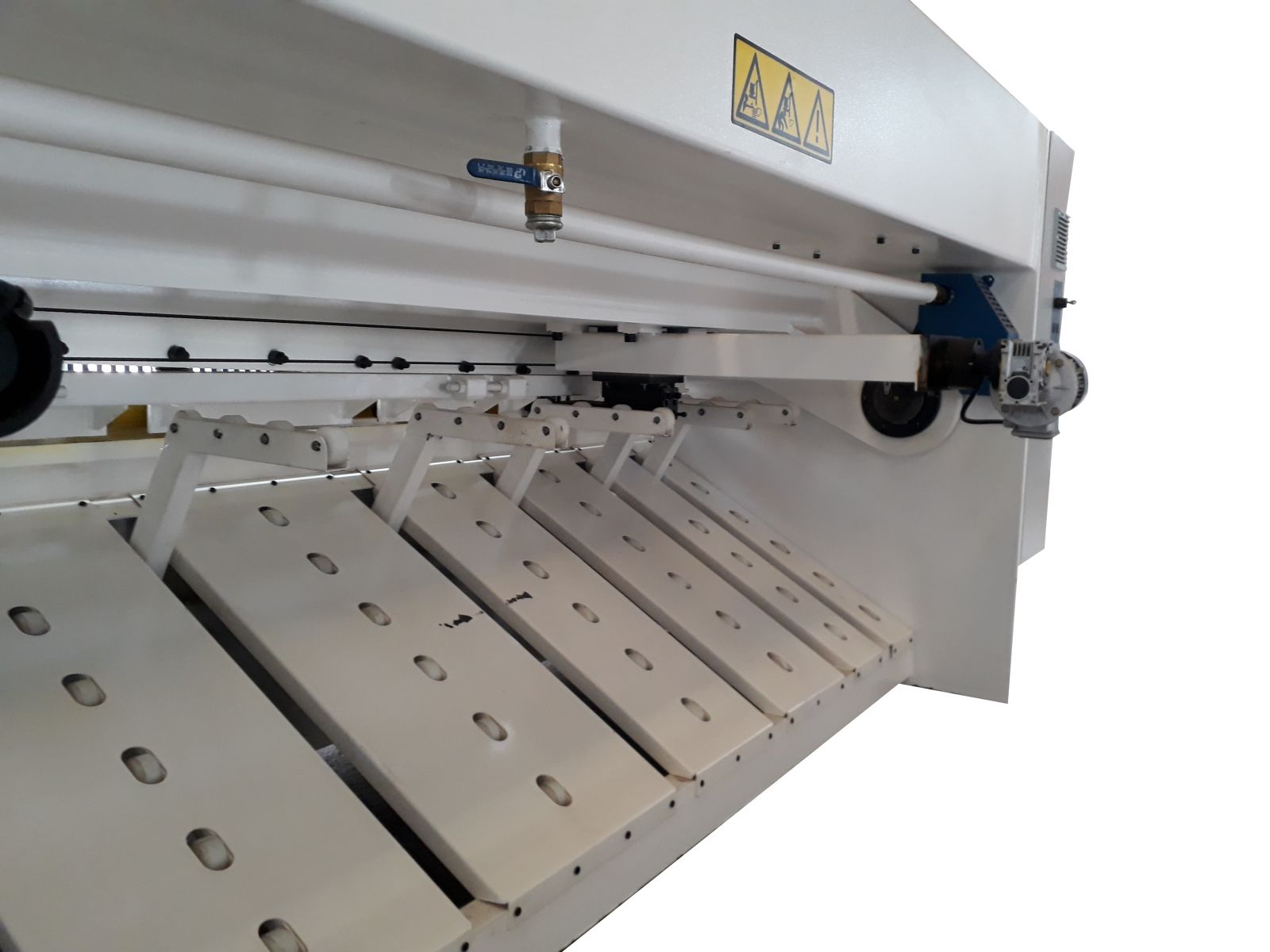 As guilhotinas oscilantes, graças ao seu design e construção especiais, permitem cortes precisos e rápidos. A gaveta superior é montada sobre dois rolamentos esféricos duráveis e de alta qualidade, com durabilidade comprovada de 20 anos de uso contínuo.