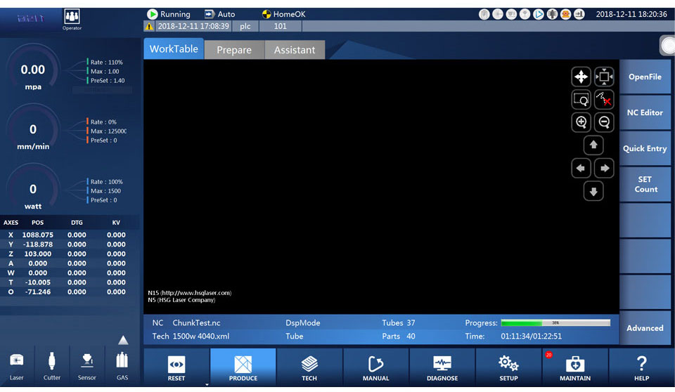 Possui uma interface inteligente com parâmetros de usuário simplificados e diversas funções de corte de tubos, como 50 tipos de processos de emenda, uma biblioteca de materiais proprietária, operação sem fio e ajuste de potência do laser para garantir a qualidade do corte.